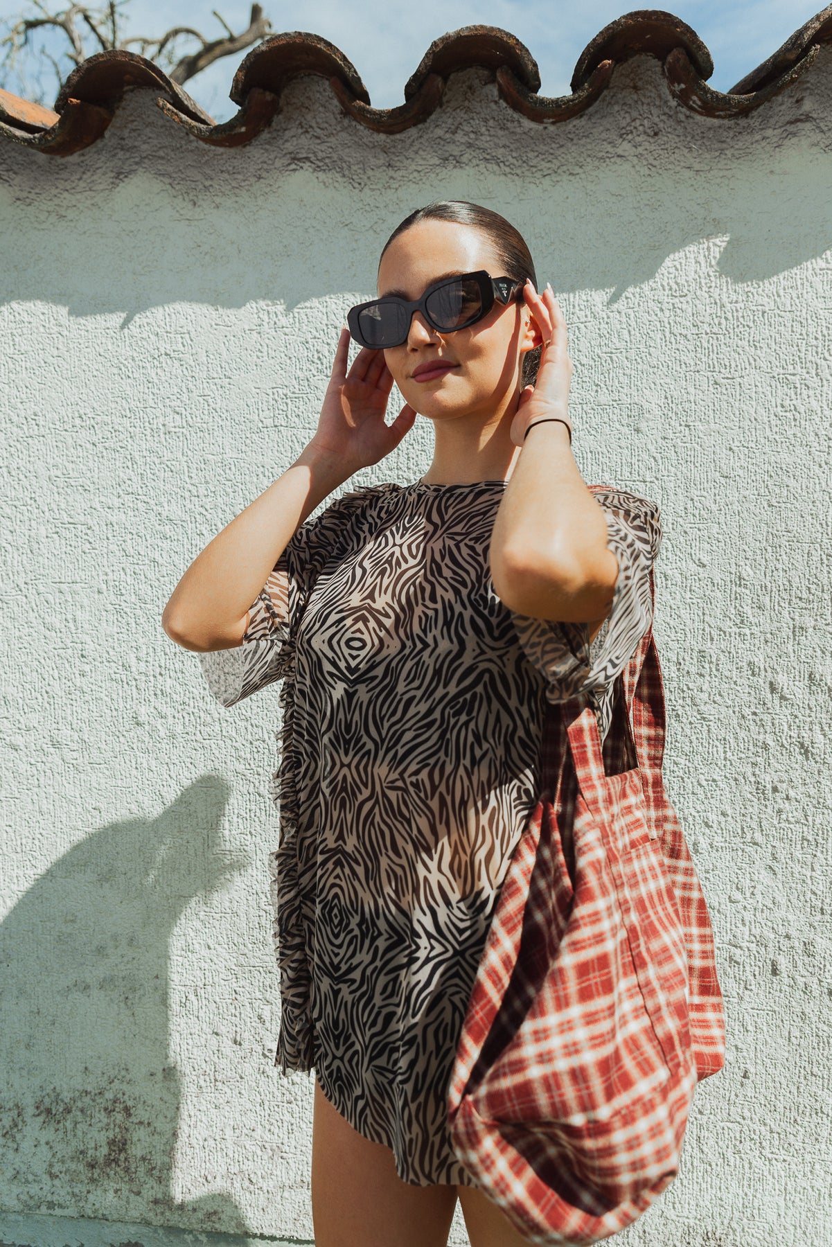 POLERA CEBRA OVERSIZE VOLANTE - CAFÉ