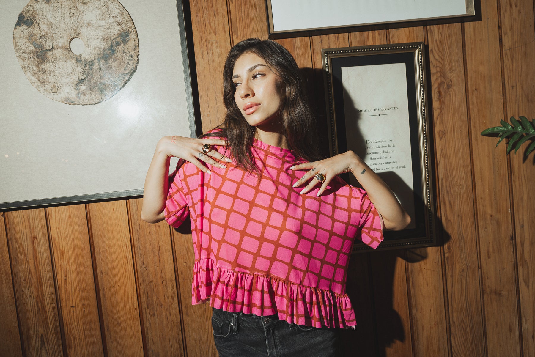 Nuestra polera oversize en tono rosa vibrante con diseño geométrico en contraste es perfecta para quienes aman destacar con estilo y comodidad. Su silueta amplia y relajada cae con movimiento natural, mientras el delicado vuelo en el ruedo aporta un toque femenino y moderno que eleva cualquier look.